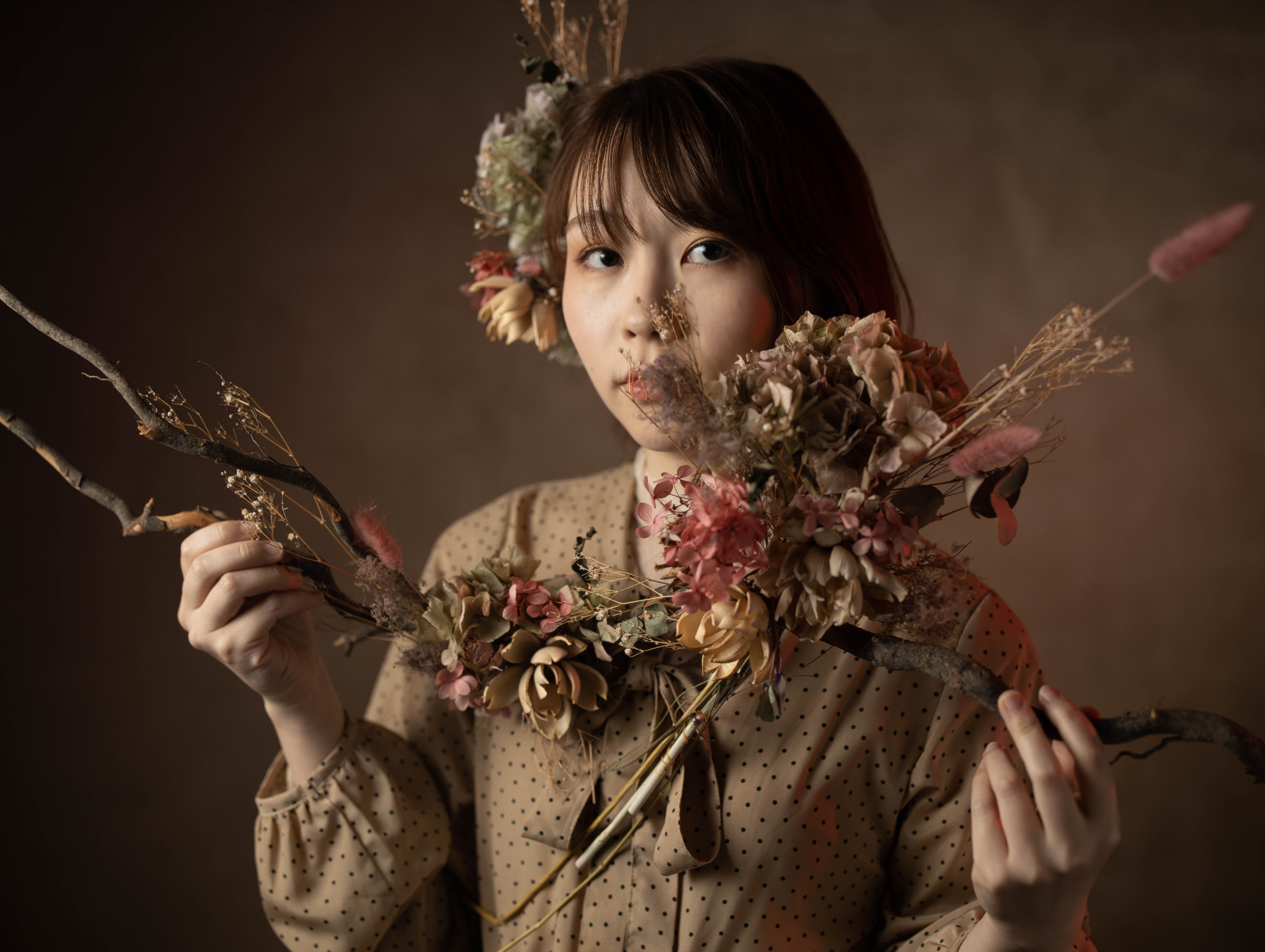 アトリエでの撮影の例です。 作例1:ストロボを使った凛とした美しさ 作例2:自然光で撮る陽だまりのような優しさ 作例3:自然光で撮る陽だまりのような優しさ 作例4:自然光で撮る陽だまりのような優しさ 作例5:計算された光で織りなす芸術的な美しさ