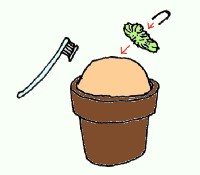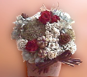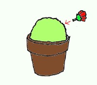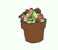 花や木の実の色、種類と量、大きさの組み合わせで、季節感、情緒が表現できると思います。この辺は生け花でも同じで、奥深いものでしょう。 しかし大抵の方は自宅で楽しむために作るのでしょうから、あまり細かいことは気にせずに、楽しんで作ればと思っています。基本的な作り方の知識さえあれば、どなたでも作れますので、ポットアレンジの作り方を絵を使って簡単に説明します。 |
