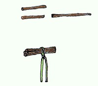 小枝を一定の長さにカットして、数本をワイヤーでねじりまとめます。ワイヤーはすべてカットせずにベースに差し込める程度残します。 ワイヤーの上には、ラフィア等を巻いてワイヤーを隠すと同時に、おしゃれな感じにします。 |
