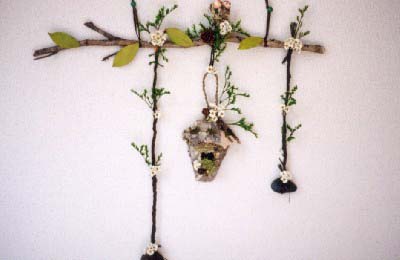 小枝に、小鳥、鳥の家などを組み合わせてみました