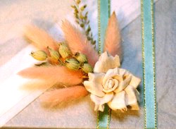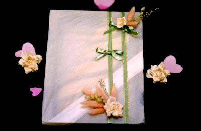 クリアケース(A4)に、プレゼントとしてネクタイとハンカチを 入れてみました。またちょっと透ける紙で包装して中身が見える感じ にしました。花はクチナシ、ラグラス(ピンク)、ペティコート(緑)です。 クチナシの花言葉は、”とても、うれしい”です
