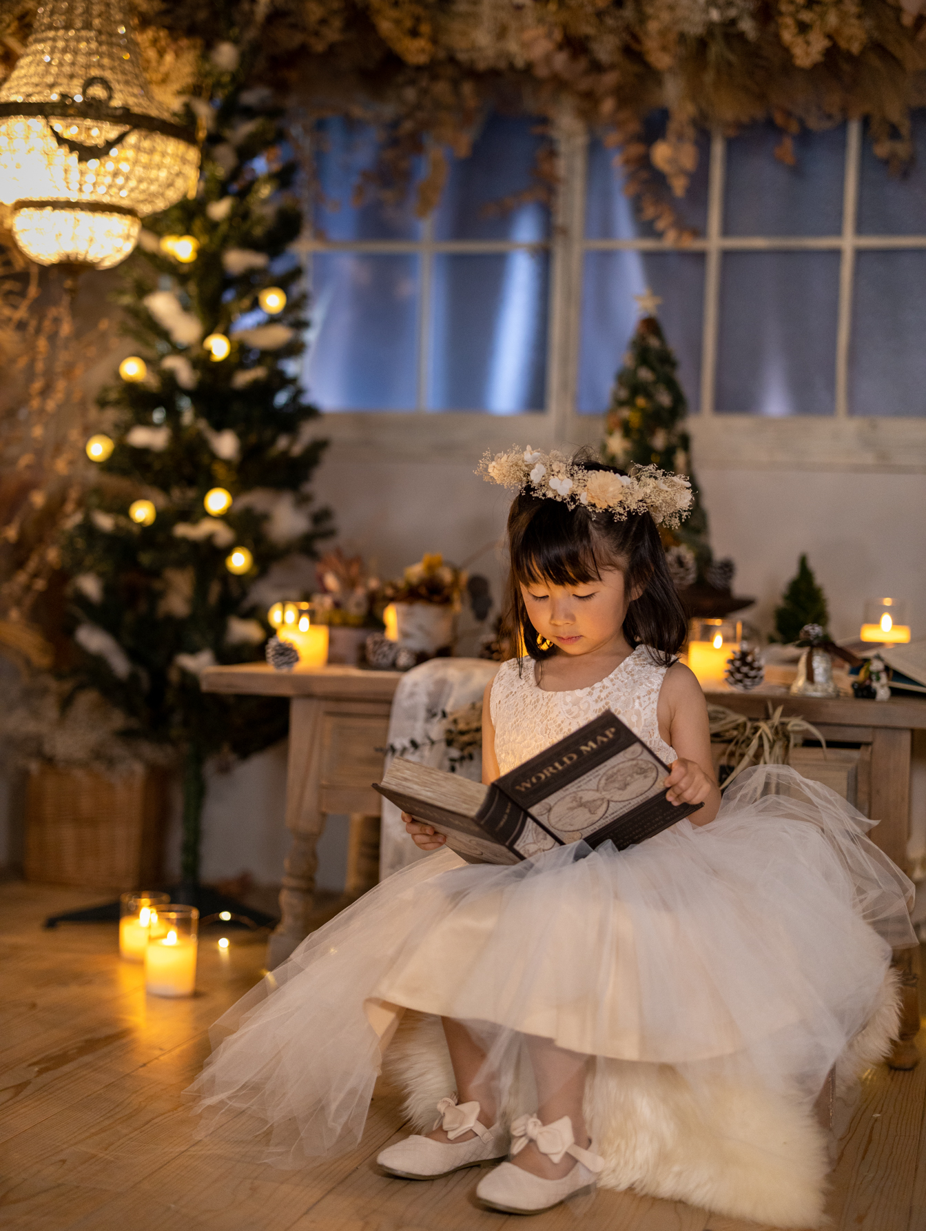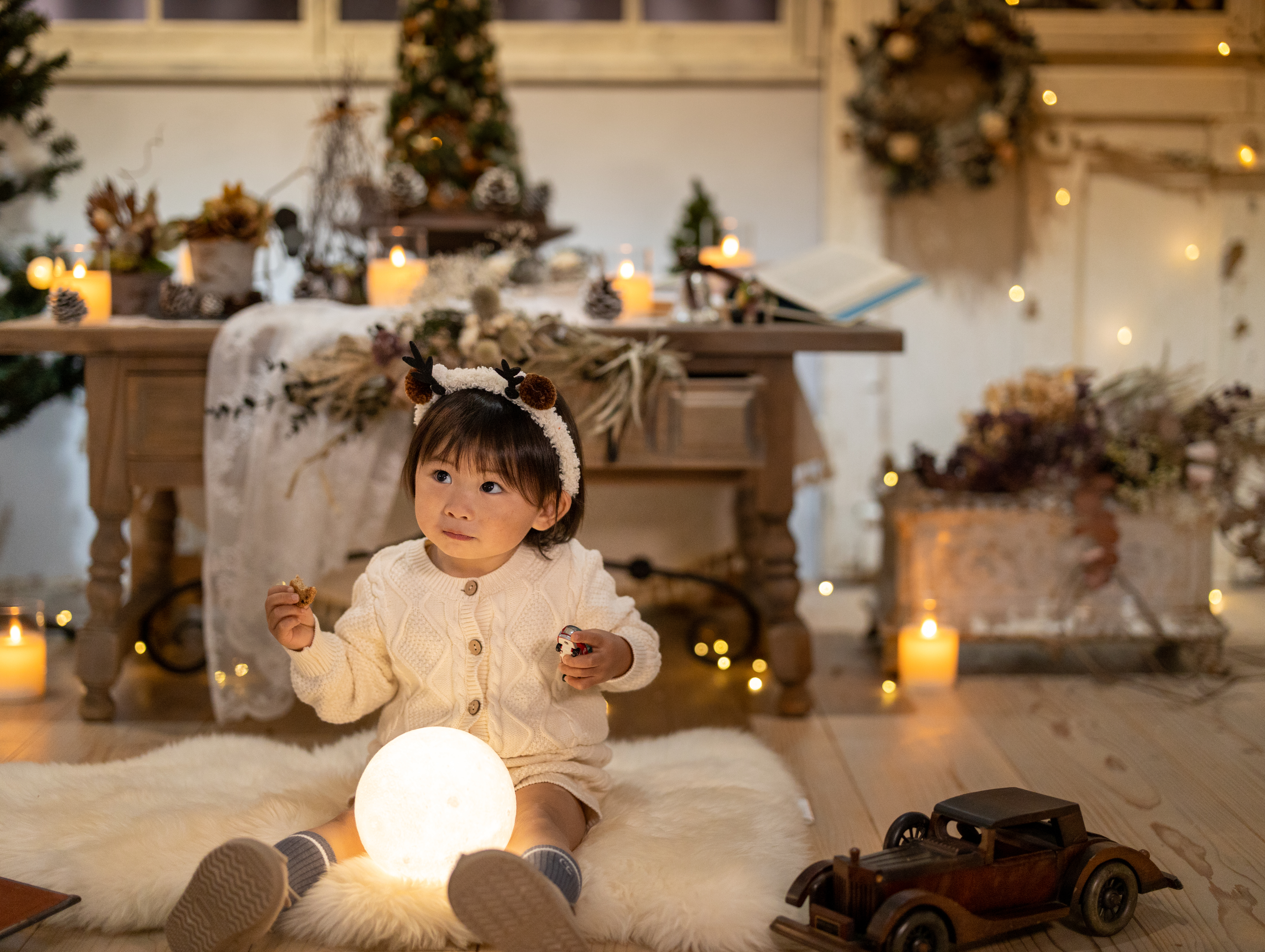撮影はアトリエの一部に準備したクリスマスのフォトブースで行います。